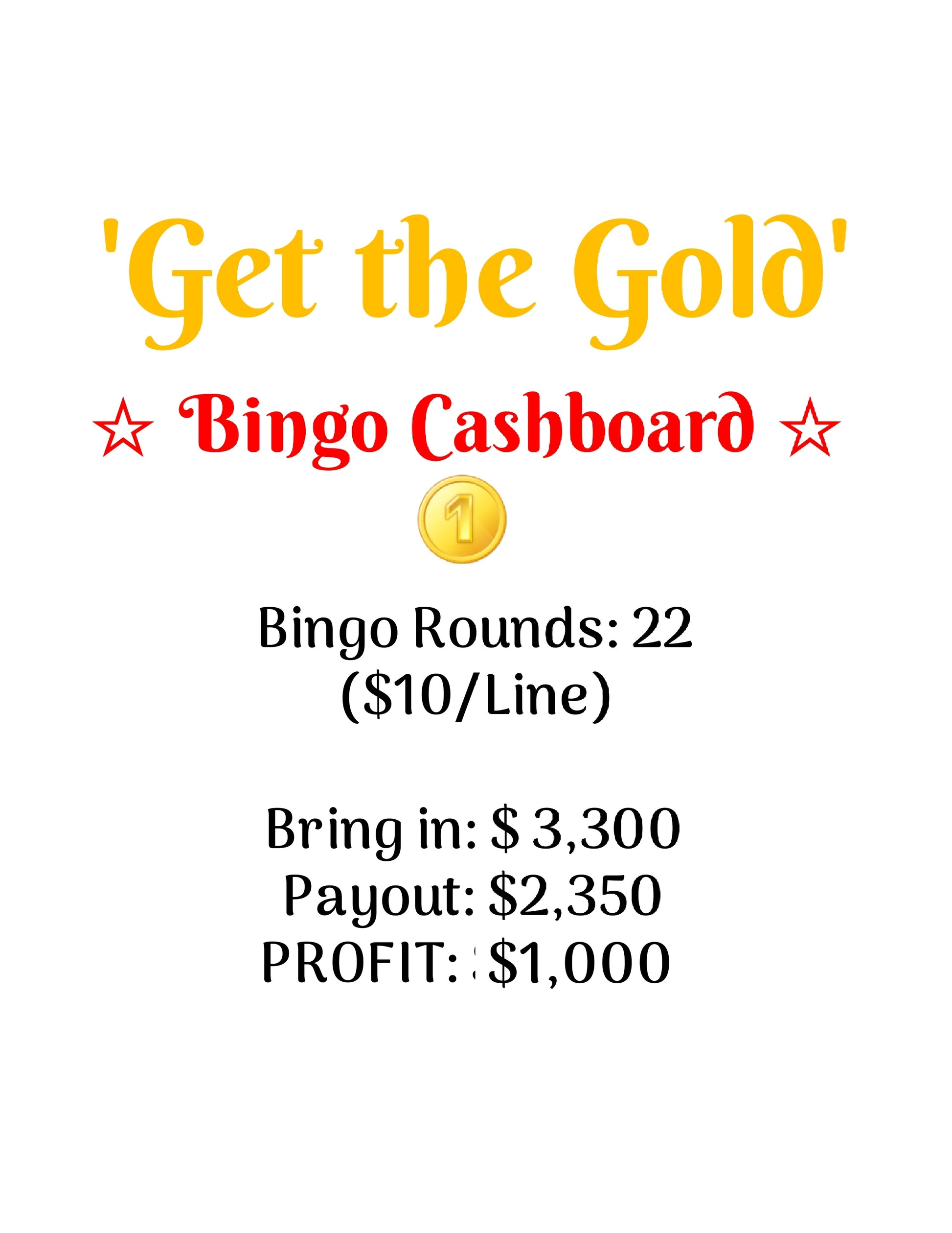 'Get the Gold' Bingo Cashboard ($10/Line, $1,000 Profit)